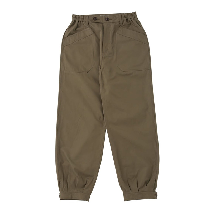 超長綿で高密度に織り上げたチノ生地を使用したパンツ ワンウォッシュ オリジナルファスナースライダー オリジナル水牛ボタン 100綿FABRIC : 上質な超長綿を使用して高密度に織り上げた高級感ある光沢と滑らかなタッチが特徴のチノクロス