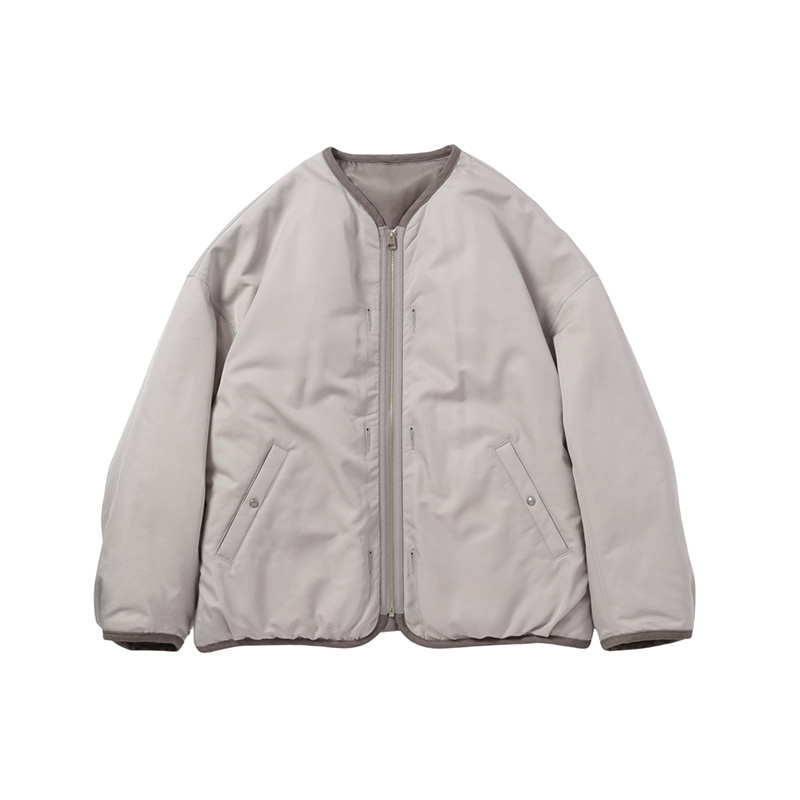 特殊な技術で紡績したウールとナイロンで織り上げた生地を使用したジャケット ホワイトグースのダウンを使用した詰め物 ワンウォッシュ オリジナル水牛ボタン リバーシブル仕様 60% 毛 40% ナイロン 特殊な技術でナイロンとウールを合わせて紡績した糸で織り上げた高密度タフタ。 ダウンウェア用生地の薄さとウールのナチュラルな表情を合わせ持った希少な生地。