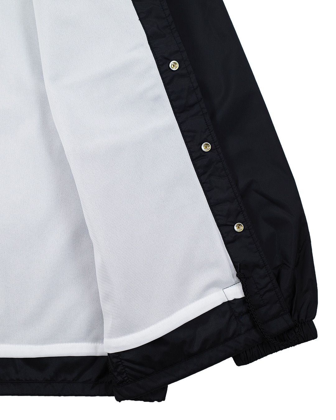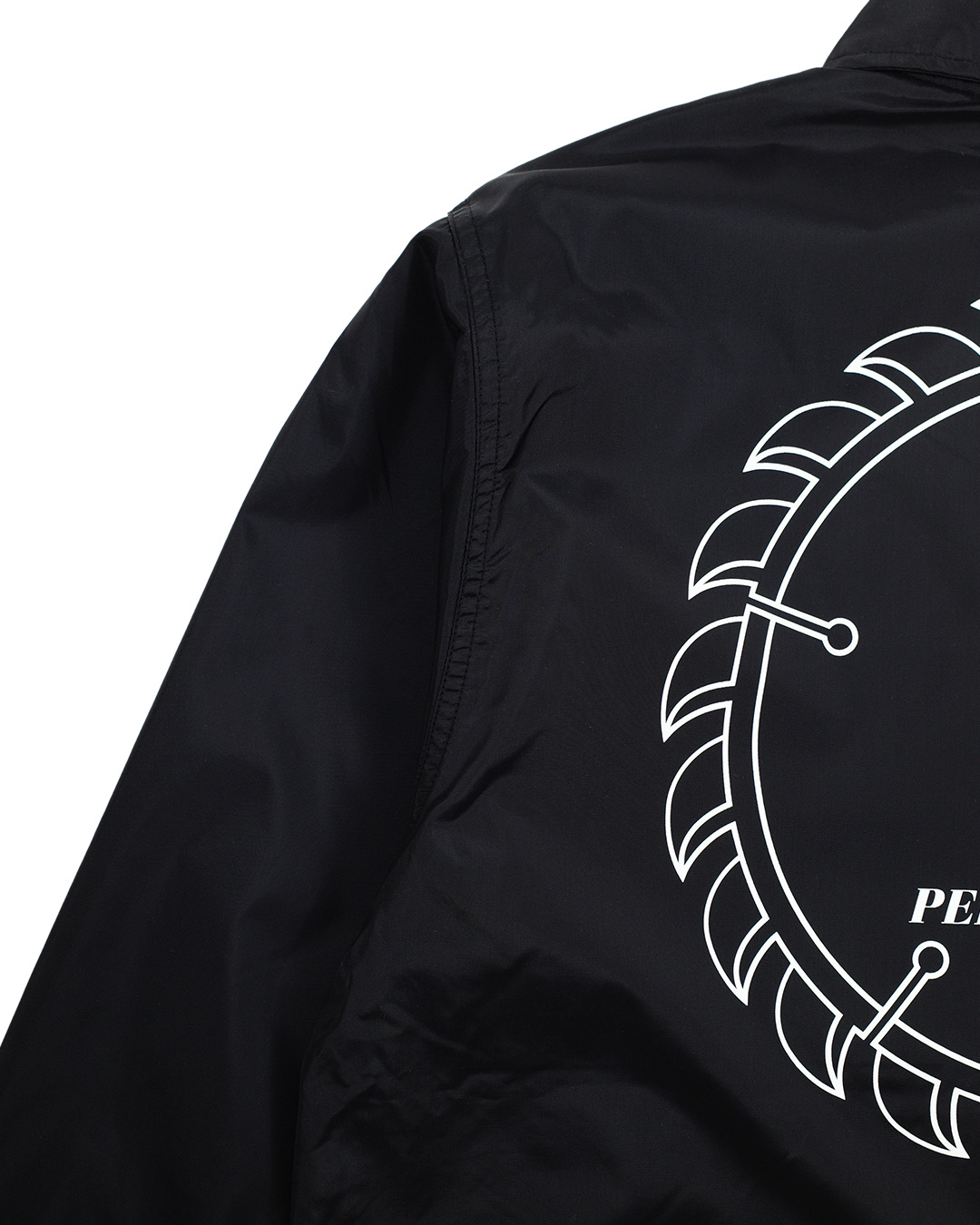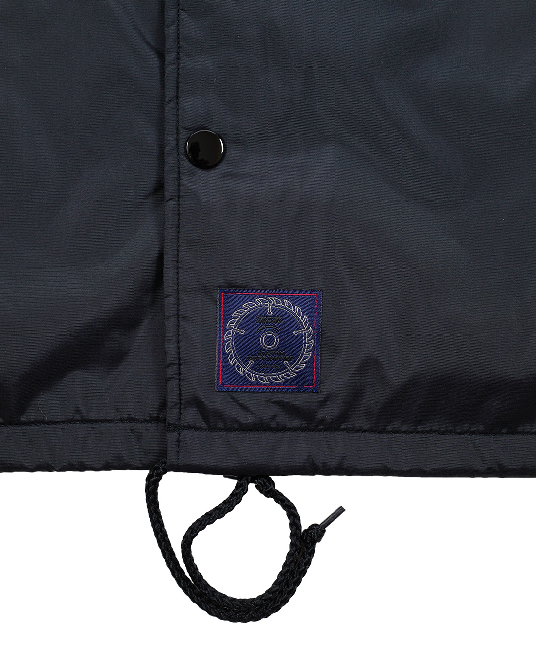 ベーシックなスタイルのナイロンコーチジャケット。 胸、背中にプリント、バックの裾に刺繍入り。